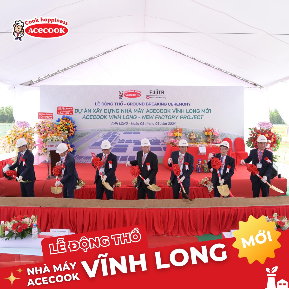 Công ty Cổ phần Acecook Việt Nam động thổ dự án nhà máy sản xuất các sản phẩm ăn liền có quy mô đầu tư lớn, lên đến 200 triệu USD ở khu vực Đồng bằng sông Cửu Long.