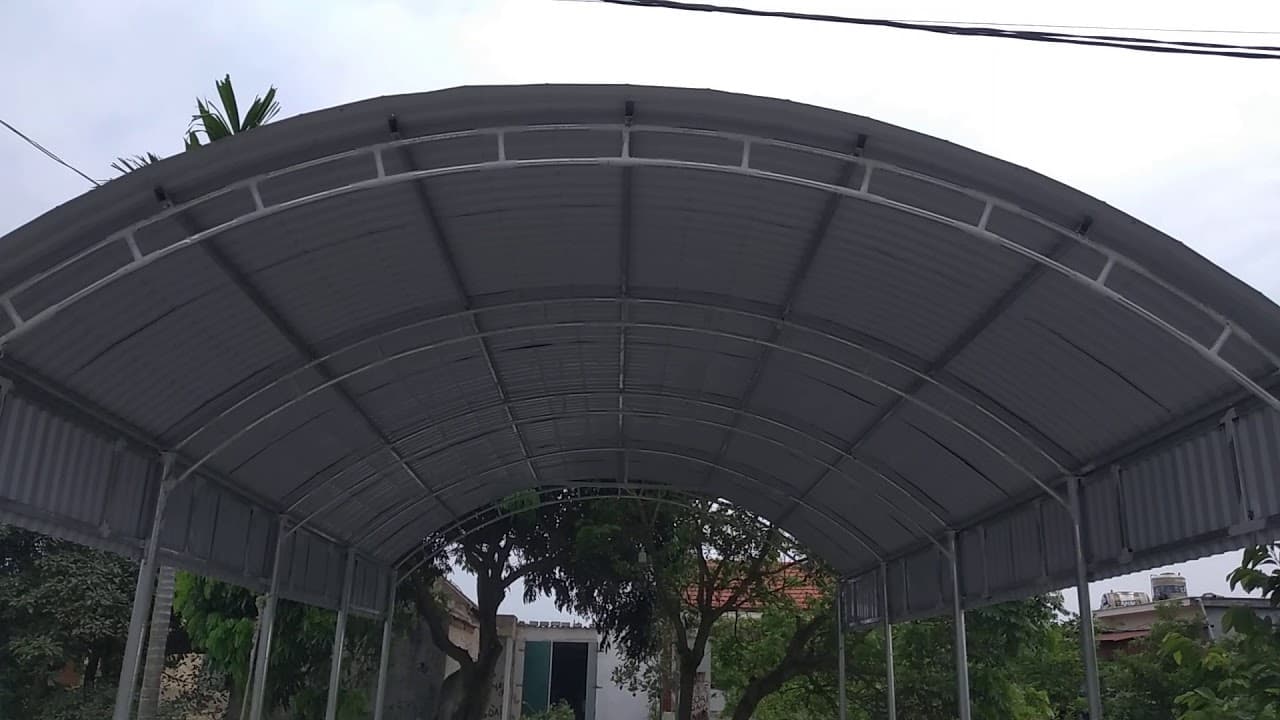 Mái tôn che sân trước nhà dạng vòm